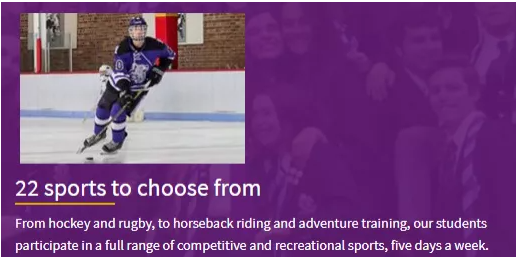 體育:Stanstead作為一所體育精英學(xué)校,在專業(yè)和敬業(yè)的體育教練帶領(lǐng)下,學(xué)校的運(yùn)動健兒在眾多的體育項(xiàng)目中名列前茅,例如足球、籃球、高爾夫球、游泳、以及冰球。Stanstead的男女冰球隊(duì)在整個(gè)魁北克省都是首屈一指的球隊(duì)。同時(shí),學(xué)校的男子籃球隊(duì)在逐步步入新英格蘭精英球隊(duì)行列。