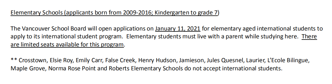 溫哥華教育局2021年9月入學(xué)位置清單