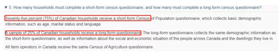 | 25%的加拿大家庭將收到一份長(zhǎng)問(wèn)卷調(diào)查,除了與短問(wèn)卷相同的人口統(tǒng)計(jì)信息以外,還將包含社會(huì)、經(jīng)濟(jì)狀況,以及住房信息。 |