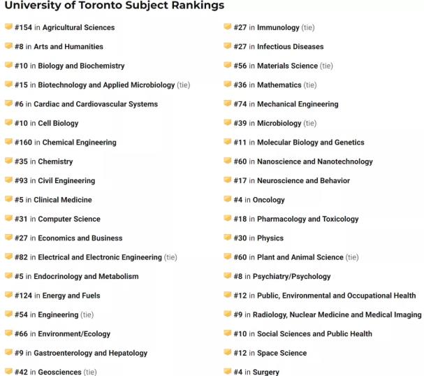 多倫多大學(xué)各大學(xué)科在世界的排名