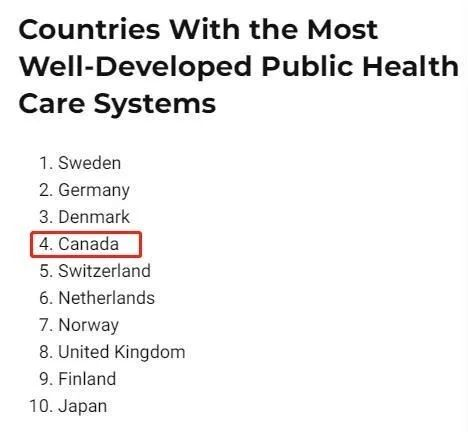 值得注意的是,在這份報(bào)告中的醫(yī)療系統(tǒng)全球排名中,加拿大排在第四位,居于瑞典(第一名)、德國(guó)(第二名)和丹麥(第三名)之后。而美國(guó)的醫(yī)療系統(tǒng)排在第22名,相比于2020年,下降了7個(gè)名次。