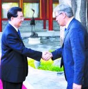 大猶長約翰(右)曾經(jīng)兩會胡錦濤。