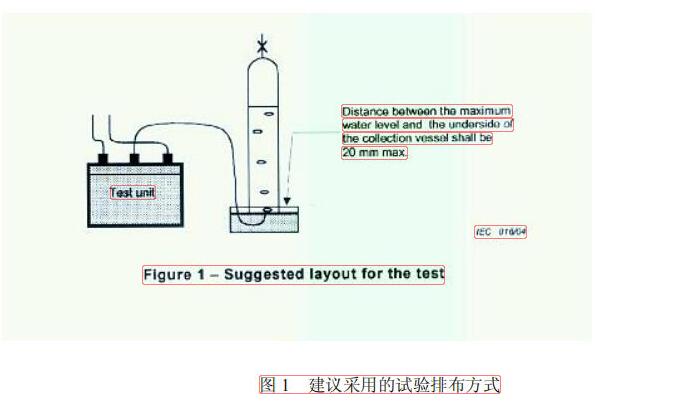 .3試驗電池采取串聯(lián)方式試驗,并在整個試驗期間電池要保持在20C~25°C之間。試驗電池裝上單獨的或共用的氣體收集裝置,以便在數(shù)天的試驗過程中收集所有電池排出的氣體,其體積的計量要達到相應(yīng)的精度。