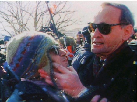 克雷蒂安直接從人群中穿了過去,正好面對面地遇見抗議者。他一下子抓住了這位抗議者的領口,狠狠一推。這一幕被當地的電視臺拍了下來,后來被戲稱為“下文尼根式的握手”(克雷蒂安是魁省下文尼根市人)。