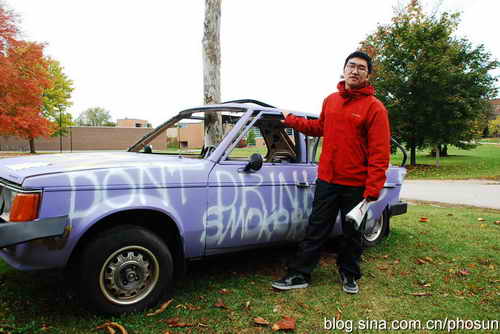 滑鐵盧大學(xué)的校園里擺放著一臺(tái)破汽車,告戒人們:不要喝酒,不要吸煙