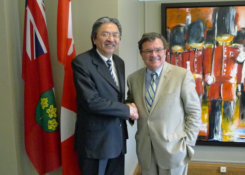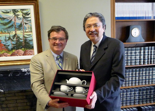 加拿大聯(lián)邦財(cái)長費(fèi)拉逖(右)歡迎香港財(cái)政司司長曾俊華到訪渥太華。