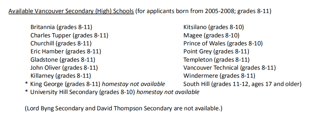 溫哥華教育局2021年9月入學(xué)位置清單