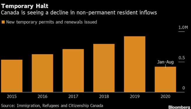 在以前的年份,加拿大都依靠兩個方式增加外來人口:永久居民移民和更多的臨時居民,今年兩者均大幅下降。