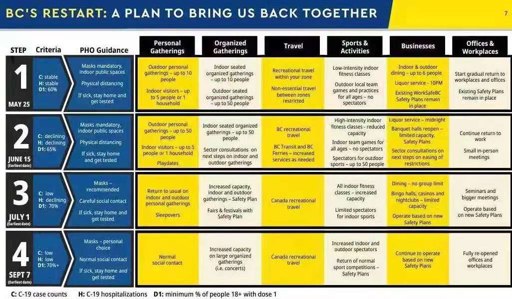 當(dāng)?shù)貢r(shí)間5月25日下午,BC省省長(zhǎng),首席衛(wèi)生官和BC衛(wèi)生廳長(zhǎng)共同宣布了本省的四階段解封計(jì)劃。根據(jù)省報(bào)“The Province”的最新報(bào)道,BC省在疫苗接種的道路上也是表現(xiàn)突出,目前有超過60%的成年人完成了第一劑疫苗的注射,BC省民有望在9月生活回歸正軌。