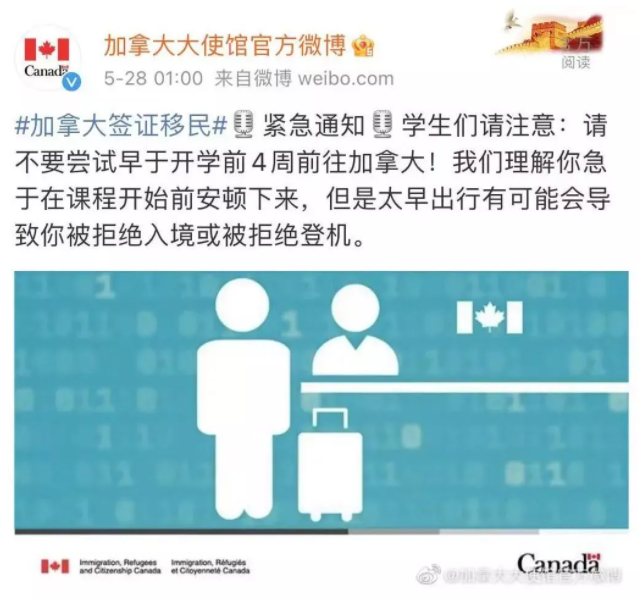 留學(xué)生在早于開(kāi)學(xué)前四周前往加拿大,可能被拒絕入境或拒絕登機(jī)!