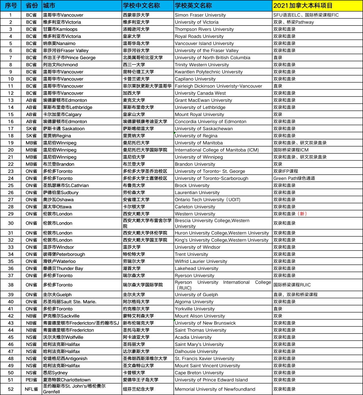 作為國(guó)內(nèi)最大的海外院校服務(wù)商,加誠(chéng)博教合作眾多加拿大院校,已經(jīng)畢業(yè)多年的人士可以選擇學(xué)院2-3年的大專(zhuān)課程,而現(xiàn)在加拿大各大學(xué)也認(rèn)可香港的dse考試,所以,應(yīng)屆高中畢業(yè)生也可以考慮加拿大本科,同時(shí)實(shí)現(xiàn)學(xué)業(yè)和移民目標(biāo)。下面附上加誠(chéng)合作的大學(xué)和學(xué)院項(xiàng)目項(xiàng)目的清單。