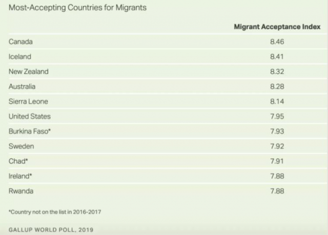相比于其他發(fā)達(dá)國家,加拿大人對移民的接受程度高是有目共睹的。以民意調(diào)查而聞名的績效管理咨詢公司Gallup,曾在去年進(jìn)行了一次大規(guī)模的民意調(diào)查。