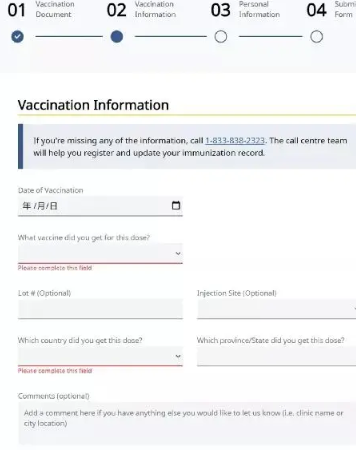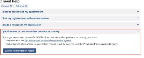 點擊“I got dose one or two in another province or country”(我在其他省份或國家接種了一針或兩針疫苗)