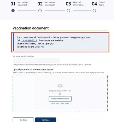 全部完成后點擊continue按鈕進入最后一步。在此預(yù)覽并編輯好之前填寫的全部內(nèi)容之后,就可以打勾提交了。如信息缺失,省政府會有專門的人員與您聯(lián)系。該記錄上傳到BC省免疫登記處大約需要2到3周時間,一旦登記成功,就可以通過Health Gateway在線訪問您的免疫記錄。