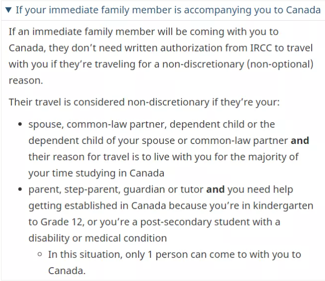 如果直系親屬將與留學生一起前往加拿大,并且他們出于必要旅行原因,則無需IRCC的書面授權(quán)也可以一起入境加拿大。