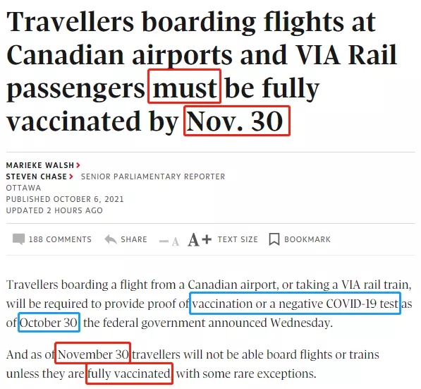而從11月30起政府將移除陰性證明選項(xiàng),未完全接種疫苗的人會被禁止登機(jī)或搭火車!疫苗接種規(guī)則將適用于乘坐從加拿大機(jī)場起飛的國內(nèi)、跨境或國際航班的航空旅客。