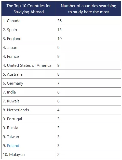 根據(jù)該報告,加拿大是法國、南非和阿拉伯聯(lián)合酋長國等國家學(xué)生的最愛。