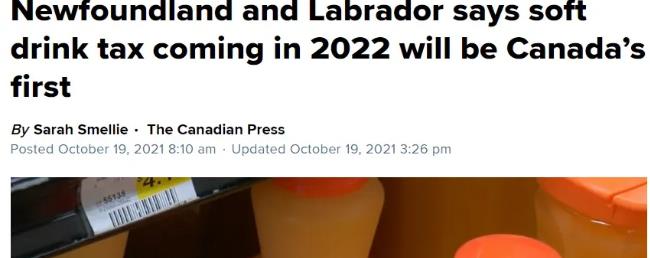 REF:https://globalnews.ca/news/8277054/newfoundland-and-labrador-sugary-drink-tax/