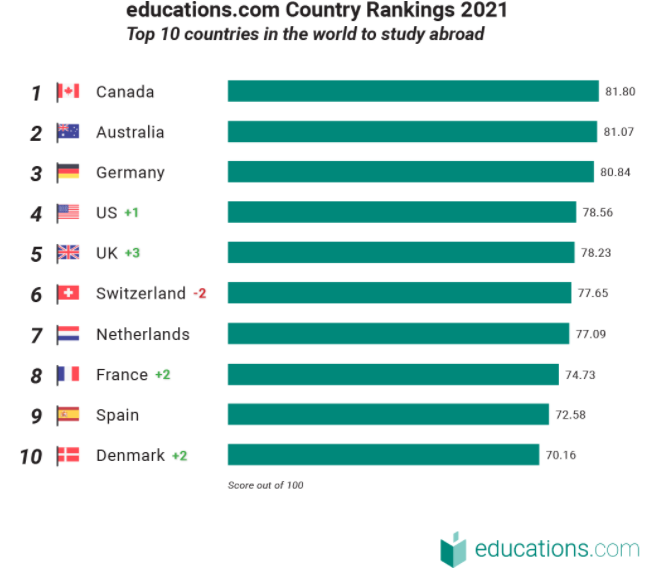 作為2021年U S News 評比的世界最好國家排名中第一的國家,和被educations.com評選的最適合留學(xué)的國家排名中第一的國家,加拿大本身就對國際留學(xué)生具有極大的吸引力。