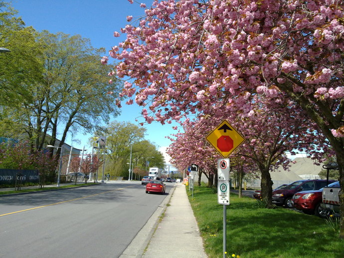 剛一回到溫哥華,過(guò)馬路總是戰(zhàn)戰(zhàn)兢兢的。“老外”們習(xí)慣開(kāi)快車(chē),到路口不提前減速,那氣勢(shì)總讓我覺(jué)得他是要撞過(guò)來(lái)的似的,再加上在北京已經(jīng)養(yǎng)成了在人行橫道上“人要讓車(chē)”的良好習(xí)慣,所以每當(dāng)有車(chē)開(kāi)過(guò)來(lái),總是下意識(shí)地停下腳步。