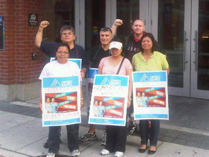 由于不滿資方給出的工資待遇,工會方面于本周四(9月1日)零時宣布開始罷工。周四和周五,本市幾乎每個社區(qū)學院都出現(xiàn)了幾人至幾十人不等的工會員工。他們的脖子上掛著標語,還拉出了“罷工糾察線”(Picket Line),示威活動一直持續(xù)到晚上7點之后。