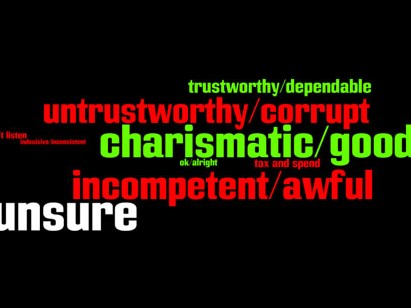 這項(xiàng)由CP42、加拿大電視臺(tái)、環(huán)球郵報(bào)舉辦的民意調(diào)查要求選民用一個(gè)詞來(lái)形容胡達(dá)克、麥堅(jiān)迪以及NDP領(lǐng)導(dǎo)人賀華絲。