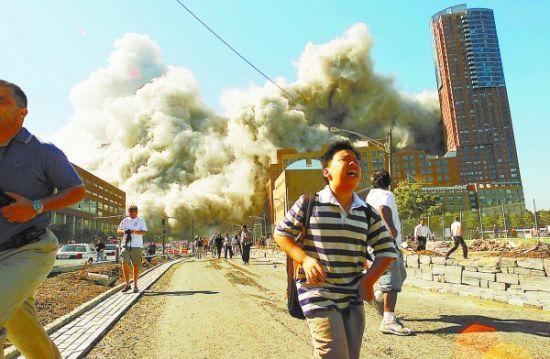 “欣賞完景色之后,我打開電腦,再起身沖上一杯咖啡,回到座位上,此時(shí)電腦顯示的時(shí)間是8時(shí)43分。我喝了一口咖啡,定下神來(lái),準(zhǔn)備工作。我突然感到背后被人重重地猛推了一下,差點(diǎn)兒撞到屏幕上。”陳思進(jìn)說(shuō),他一開始認(rèn)為誰(shuí)開玩笑。可回頭一看,根本沒(méi)人。于是立刻想到,是不是地震,但不像。地震應(yīng)當(dāng)搖晃,可在被“推”了之后,再也沒(méi)有搖晃。“我做夢(mèng)都沒(méi)想到,那正是我所在的世貿(mào)大樓北樓,被飛機(jī)直沖進(jìn)來(lái),接著南樓也遭到了致命的攻擊。”