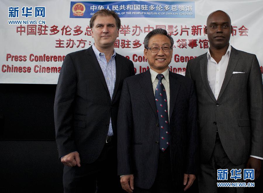 9月7日,在加拿大多倫多,多倫多國際電影節(jié)共同主席卡梅隆·貝利(右)、中國駐多倫多總領(lǐng)事陳立鋼(中)與多倫多國際電影節(jié)藝術(shù)總監(jiān)科文在新聞發(fā)布會上合影。當(dāng)日,第36屆多倫多國際電影節(jié)組委會與中國駐多倫多總領(lǐng)館在此首次聯(lián)合舉辦中國參展影片新聞發(fā)布會,向媒體介紹參展中國影片情況。第36屆多倫多國際電影節(jié)將于9月8日至18日舉行,有《我十一》《樹先生》《桃姐》《奪命金》《倭寇的蹤跡》等中國影片參展。