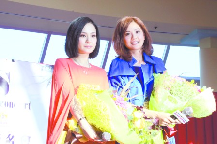 圖為鐘欣桐(左)及蔡卓妍(右)出席昨日在萬錦廣場舉行的記者及簽名會。
