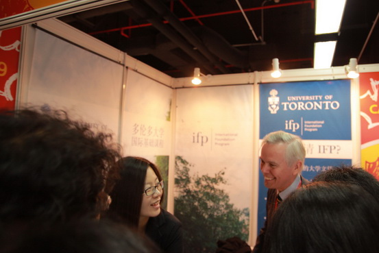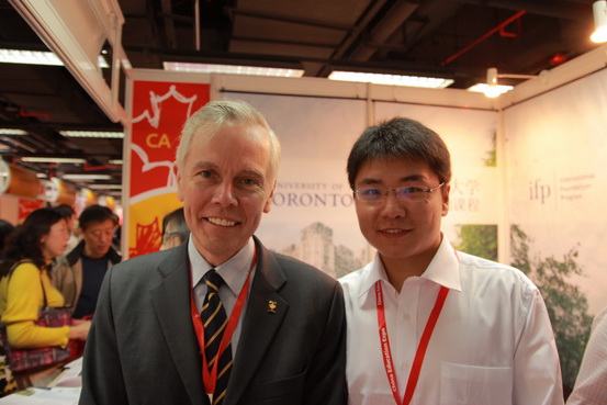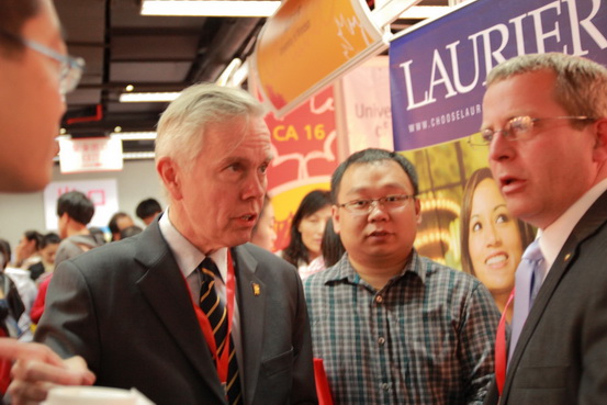 2011中國(guó)國(guó)際教育展現(xiàn)場(chǎng):學(xué)在加拿大首席專家David陪同加拿大駐中國(guó)大使馬大維(David Mulroney)與勞里埃大學(xué)代表面談