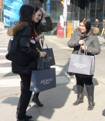 現(xiàn)場(chǎng)工作指導(dǎo)Sue Kuruvilla表示,由此次一日性暫時(shí)服飾店的開幕來看,大多倫多地區(qū)追求時(shí)尚人士對(duì)于吳季剛服飾喜愛的程度幾近于瘋狂。訂于中午12時(shí)開幕的店門口,一大早就有人在外排隊(duì)等候,且雖然全店賣的都是女性的服裝和少量的圍巾、手提袋,但排隊(duì)的人群中不乏有男士前往選購給女友或妻子的禮物。