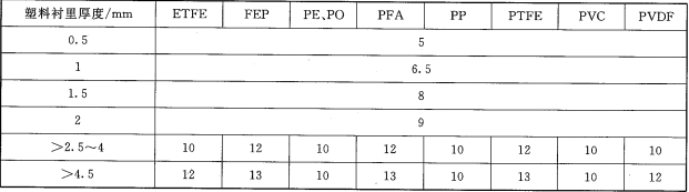 電火花試驗(yàn)儀試驗(yàn)電壓要考慮氟塑料襯里鋼管。管件的終用途和襯里厚度。測(cè)試電壓低不小于5kV,高不大于15kV 。室溫下的檢驗(yàn)電壓應(yīng)符合下表的規(guī)定。