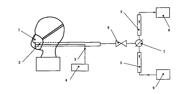 將被測樣品佩戴在匹配的試驗頭模上,調(diào)整面罩的佩戴位置及頭帶的松緊度,確保面罩與試驗頭模的密合。再將通氣量調(diào)節(jié)至(85±1)L/min,測定并記錄呼氣阻力。在測試過程中,采取適當方法,避免試樣貼附在呼吸管道口。