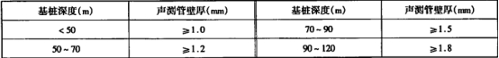 聲測(cè)管的壁厚要求,除能滿足工藝性能外,為確保聲測(cè)管安全使用,宜符合下表的要求。